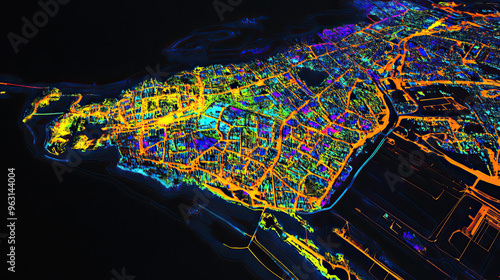 Obraz premium Technical aerial visual, 3D LiDAR GIS aerial map satellite scan model...