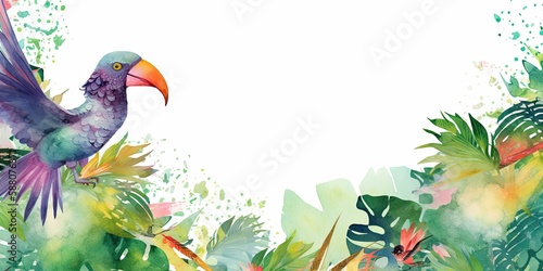 Naklejka premium Technical drawing of colorful background with tropical birds - generative AI Art