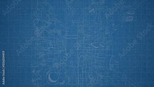 © Hirzan, Fototapeta premium Technical drawing on a gradient background.Mechanical Engineering drawing