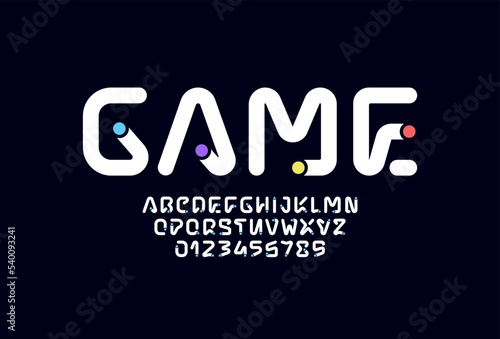 Fototapeta premium Technical high font, space alphabet, uppercase Latin letters from A to Z and Arab numbers from 0 to 9