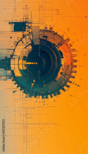 © Daria, Obraz premium Technical plan illustration of industrial equipment with a gradient background in photography
