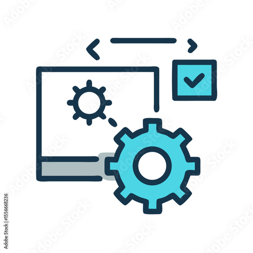 © Zahadur, Obraz premium Technical Process Automation Icon Depicting Workflow Management and Confirmation Check