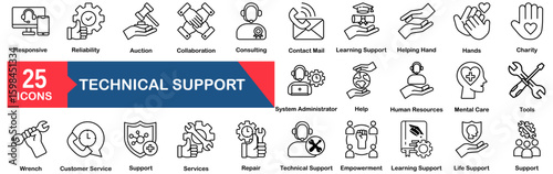 Fototapeta premium Technical Support Icon Set 25 Outline Icons In Modern Style