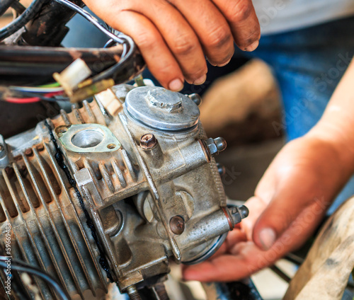 © Photo Gallery, Obraz premium Technician fixs motorcycle machine