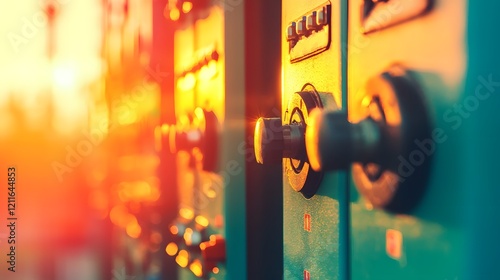 Obraz premium Technician Inspecting High Voltage Circuit Breaker in Industrial Substation...