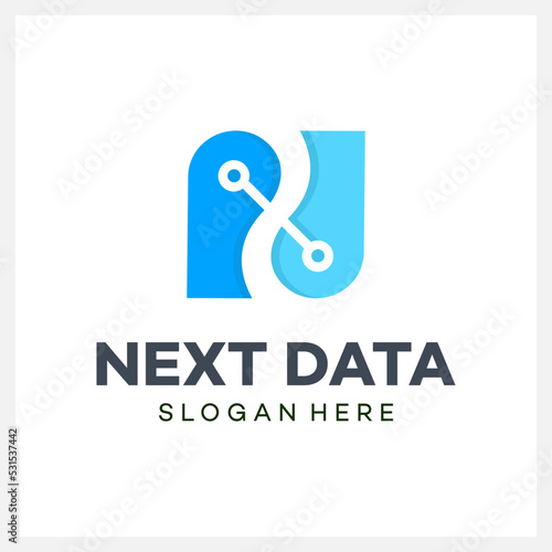© RISEVN, Fototapeta premium Techno Data logo design letter N