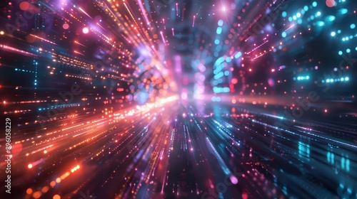 Fototapeta premium Techno-environment, digital stream, focused beams of light, bright neon...