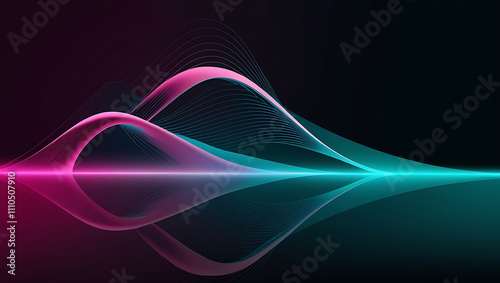 © Tech and Bussiness, Naklejka premium Technological background, Digital Wave Pattern with Vibrant Gradient Colors, copy space, flowing lines artwork, 3D wave effect.