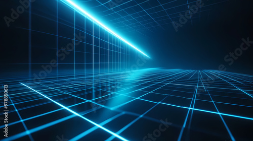 © Derby, Obraz premium Technological background of virtual grid space