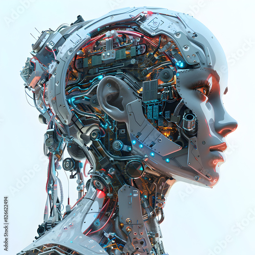 © JADE, Fototapeta premium Technological Fusion: Futuristic 3D Female Character with IGBT Components Representing Human-Tech Synergy
