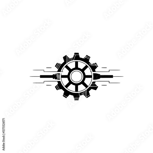 © MatandSterre, Obraz premium Technological Gear Connection - Black and White Minimalist Illustration