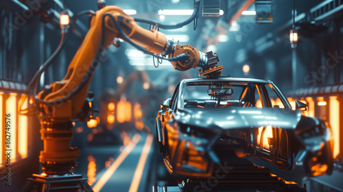 Fototapeta premium Technological precision: robotic arms performing intricate tasks on car body...