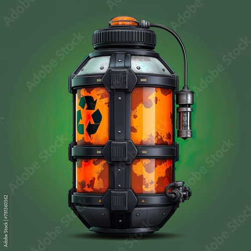 Fototapeta premium Technological Vessel For Storing Radiation Materials. Illustration On The Theme Of Computer Games And Fantasy, Objects And Details. Generative AI