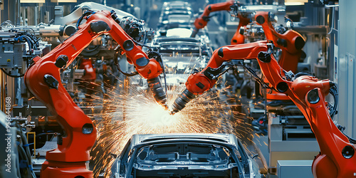 Fototapeta premium Technologie avancée de soudure robotisée dans une usine automobile