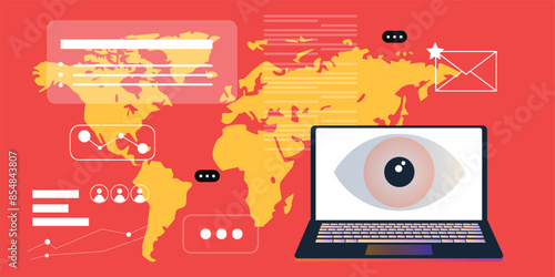 Fototapeta premium Technology abstract background. Work online, freelancing, education. Cartoon...