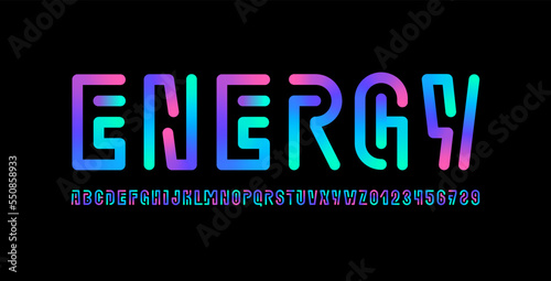 © marooshka, Obraz premium Technology abstract font alphabet made in bright style letters and numbers