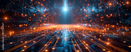 © paul, Fototapeta premium Technology abstract particle wave Background