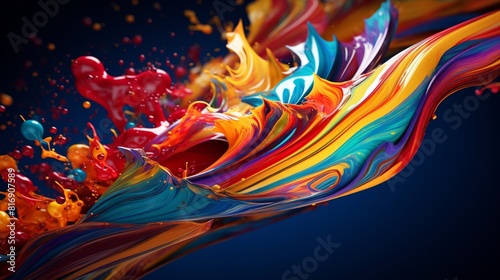 Fototapeta premium Technology and creativity fusion, abstract digital paintbrush, vibrant strokes, angled view