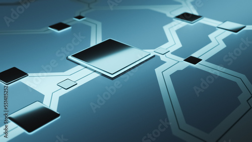 © MikeCS Images, Obraz premium Technology background CPU central processing unit on circuit board, blue AI futuristic micro processor concept, 3D rendering illustration