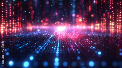 © tong2530, Obraz premium Technology background featuring floating holographic data grids in motion