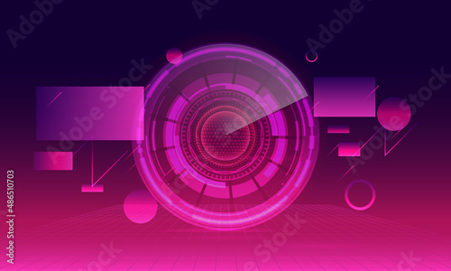 Obraz premium technology background. Retro neon effect. circuit board concept. Hi-tech digital technology.