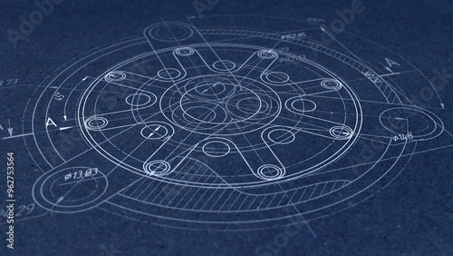 © Aliaksandr, Obraz premium Technology banner.Mechanical Engineering background .Technical drawing .