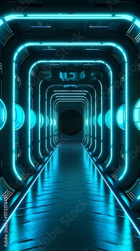 Fototapeta premium Technology blue black grid future space tunnel poster background