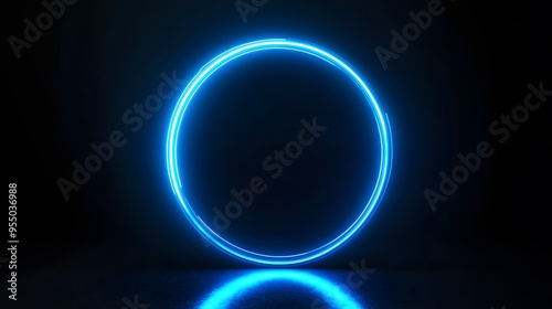 © plaksa, Obraz premium Technology blue circle light stage on black background