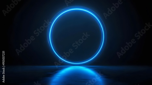 © plaksa, Obraz premium Technology blue circle light stage on black background