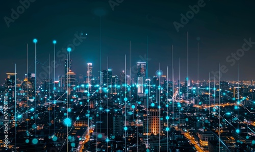 © Bundi, Fototapeta premium Technology concept of smart city and abstract dot connected by gradient line.