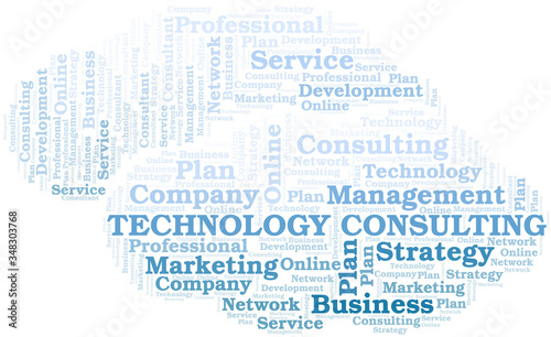 © sharafmaksumov, Obraz premium Technology Consulting typography vector word cloud.