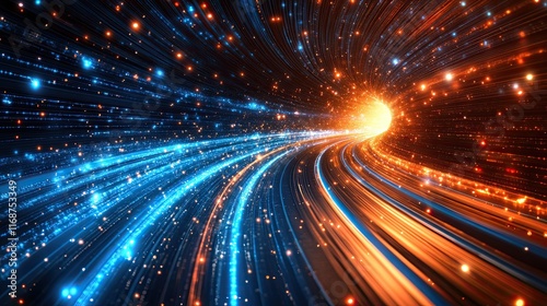 Fototapeta premium Technology data flow with wave and particle effects, representing the dynamic...