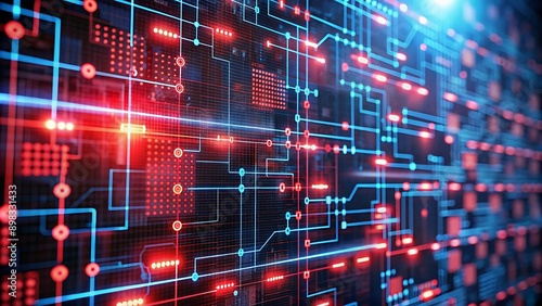 © SekhSadi, Obraz premium technology digital light background. AI GENERATED