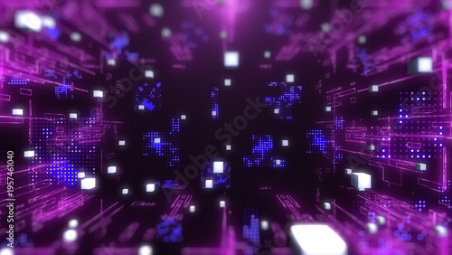 © Pakpoom, Obraz premium Technology digital line corner structure cyber data network connection concept. Abstract 3d futuristic illustration background.