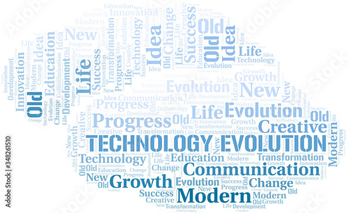 © sharafmaksumov, Obraz premium Technology Evolution word cloud collage made with text only.