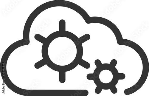 © SolaruS, Obraz premium Technology icon vector cloud computing connection. Big data global server. Line design symbol.
