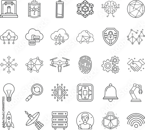 © Bappaditya Roy, Naklejka premium Technology Icons Network, Cloud, AI, IoT, and Automation Symbols