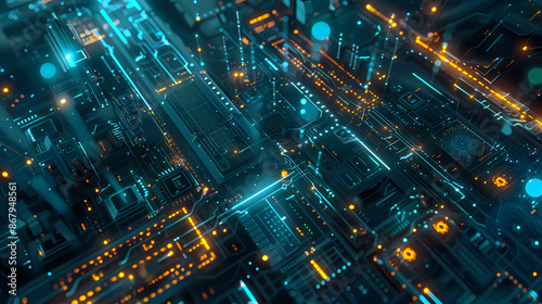Obraz premium Technology internet network high speed. Abstract digital futuristic circuit,...