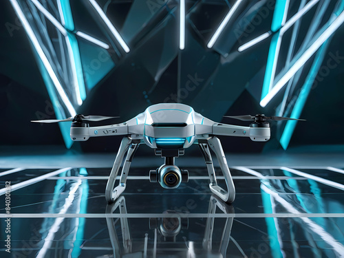 Naklejka premium Technology of the Future: A state-of-the-art drone, ready for takeoff in neon light