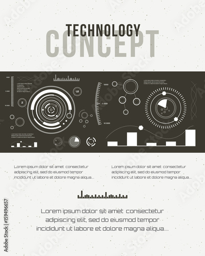 Obraz premium Technology report, flyer design template, brochure. Geometric Abstract Modern Backgrounds. Mobile Technologies, Applications and Online Services Infographic Concept. HUD, techno, business, gui, ui.