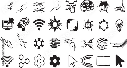 Fototapeta premium technology, science, icon, symbol, computer, brain, wifi, gear, lightbulb, circuit, network, data, connection, innovation, digital, abstract, graphic, design, element, communication, energy, processin