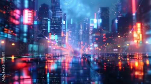 © Farkhanda, Fototapeta premium Technology screen with blurred city abstract lights background.