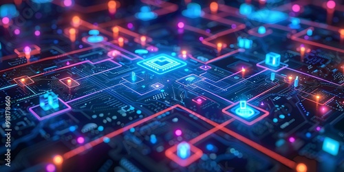 © march2, Obraz premium Technology Smart home with connected devices and digital icons Glowing house with symbolism
