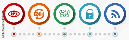 © Alex White, Obraz premium Technology vector icon set, media concept flat design web buttons, internet infographic template