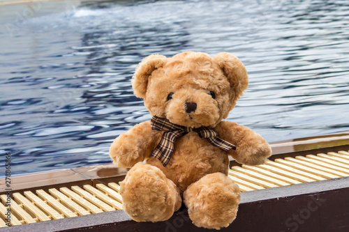 © Napob, Obraz premium Teddy bare beside the pool. alone