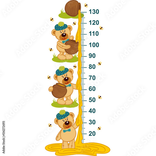 Obraz premium teddy bear and honey height measure - vector illustration, eps