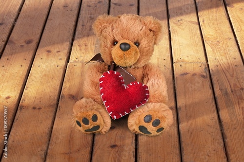 Fototapeta premium Teddy Bear hold red heart, love concept