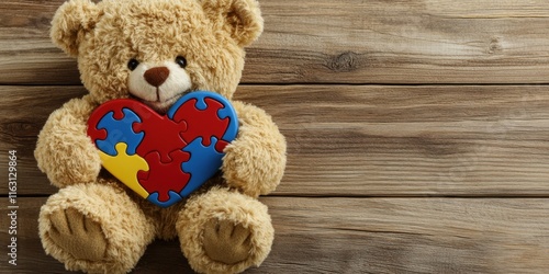 Obraz premium Teddy Bear Holding a Puzzle Heart: Autism Awareness and Support