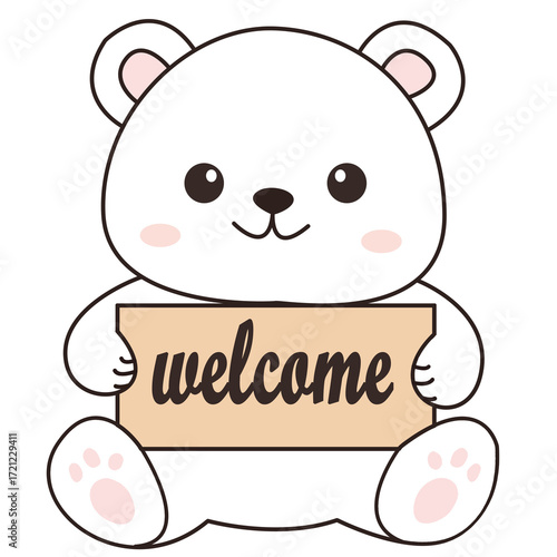 Fototapeta premium teddy bear holding a welcome sign