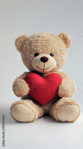 © Cozy Art, Fototapeta premium Teddy bear holding red heart against white background